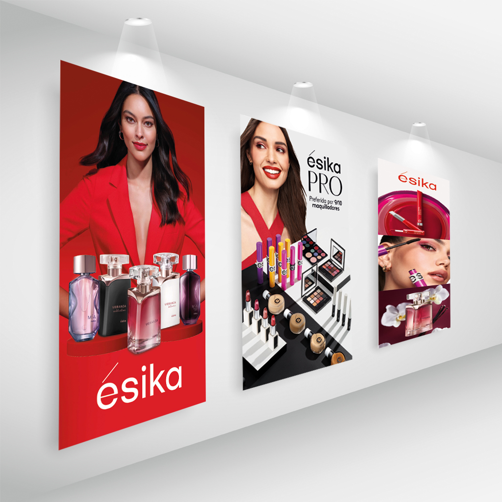 Rebrandeo de los materiales gráficos de las Tiendas de las consultoras, tanto en Lima como en provincias. Afiches Colgantes Banners Letreros